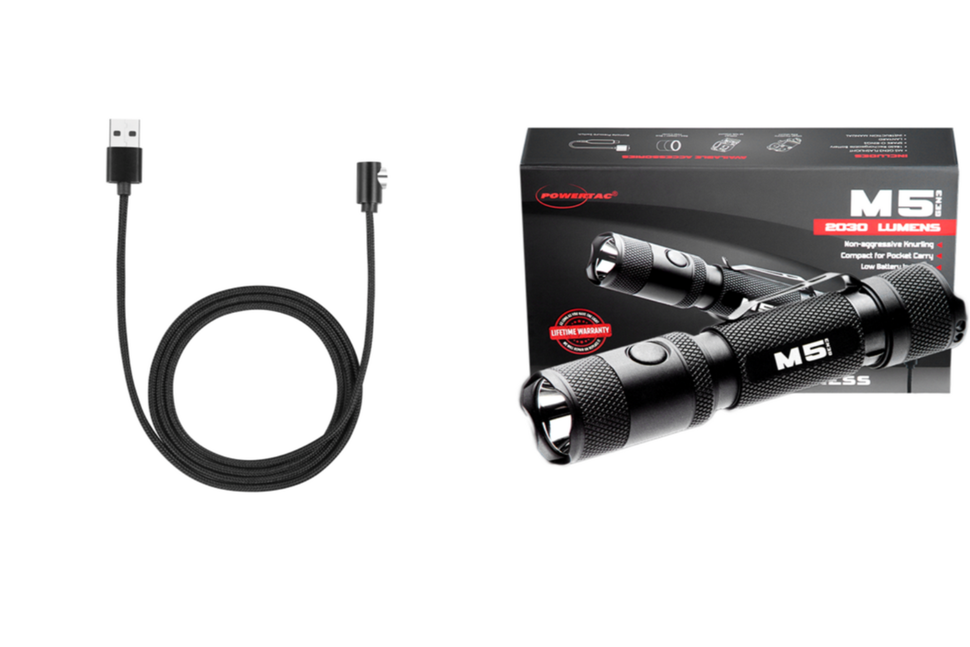 The Powertac M5 Gen3 is an all-purpose and edc flashlight. The M5 Gen3 has a 2,030 lumen max output and features a magnetic charging port. As one of the most compact 18650 lights available for pocket carry, this light is perfect for everyday carry in your car, purse, or backpack. Extra charging cable included which charges most all of our products as well.
